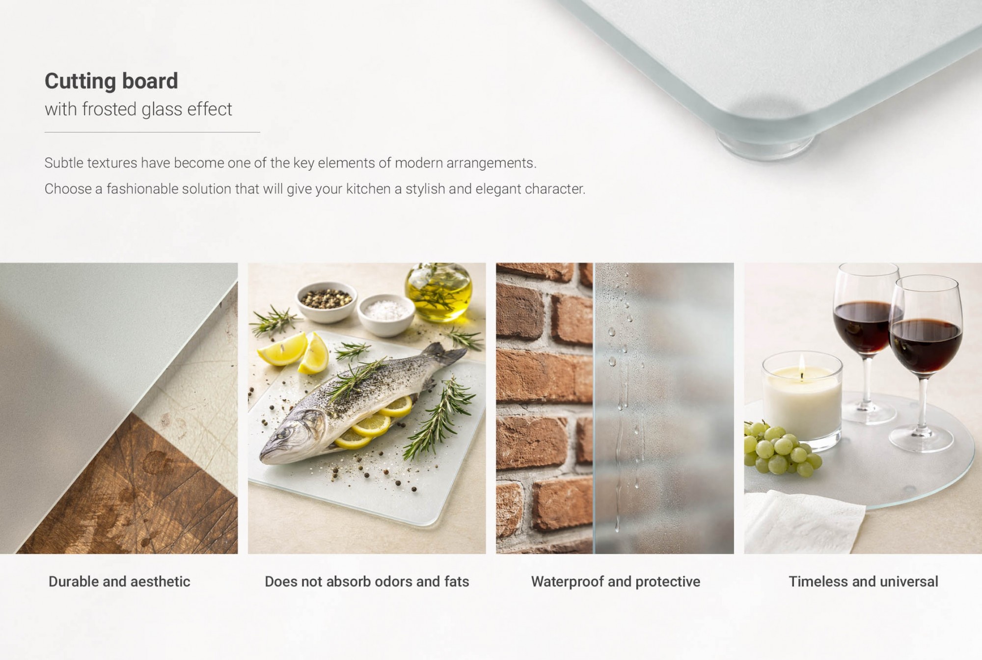 ♦ Hygiene and Safety - Tempered glass is non-porous, meaning it does not absorb odors or bacteria, making it an exceptionally hygienic choice for the kitchen. It is also easy to clean.