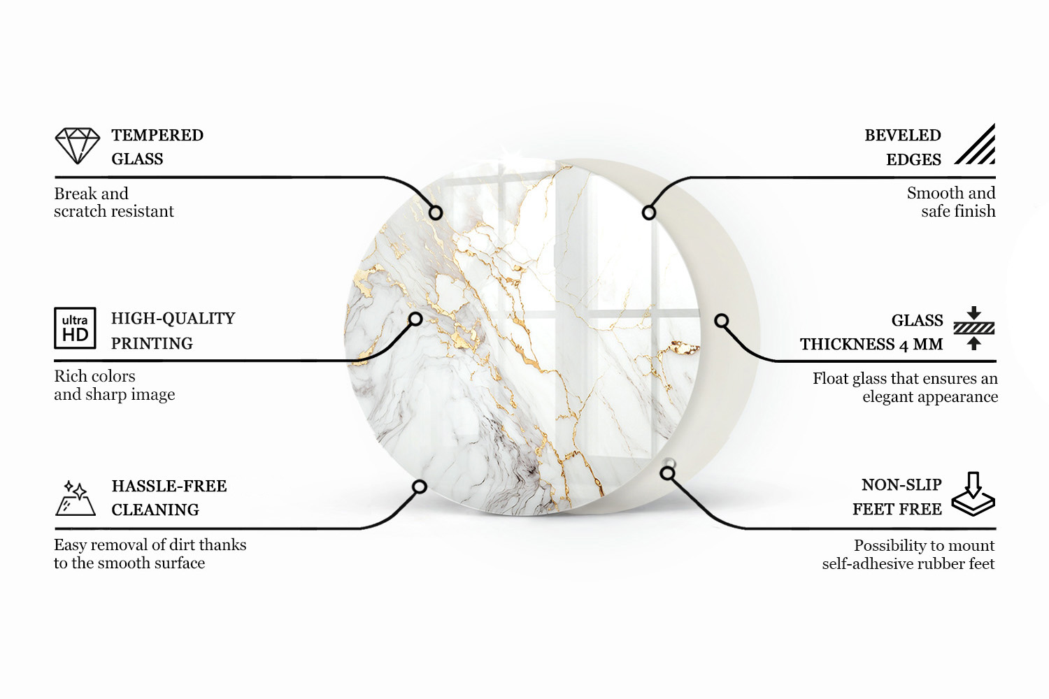 - Round glass table top Marble pattern