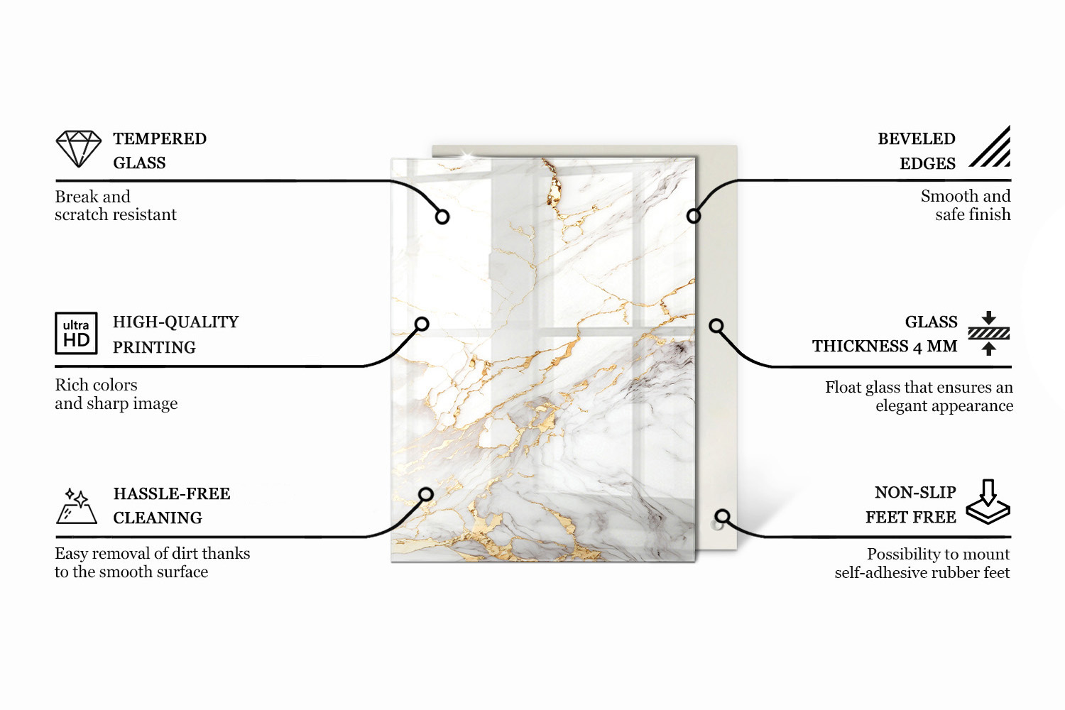 Introduce a modern vibe to your interior with a unique rectangular glass top featuring the Veined marble pattern print. It combines aesthetics with functionality, acting as a durable surface and a striking decorative element. The glass table top Veined marble pattern is an excellent choice for dining rooms, studios, or modern offices. Made of tempered glass, it stands out with its durability and intense print. It complements wood, metal, and ceramic elements beautifully. If you are looking for a table top that is both practical and stylish, this printed model is the perfect solution for any modern space.